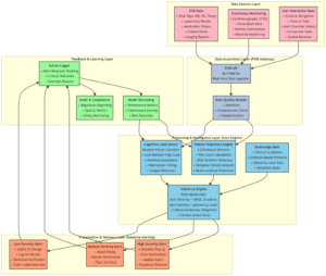 The CAAA system is designed as a modular, three-tier architecture that integrates with the hospital’s EHR via a Fast Healthcare Interoperability Resources (FHIR) API gateway, ensuring interoperability [34]. The proposed architecture is illustrated below: